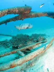 僕が西表にくる以前に、スタッフで、漁礁を作ろうと、タイヤや、廃材などを沈めたそうです