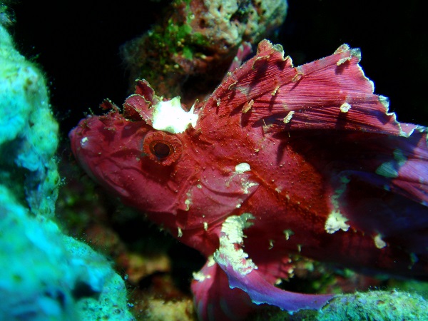 たっぷり小物を見た後は、棚の上のアカヒメジやノコギリダイなど、ワイドにも見ていきましょう!いつも見るハナビラクマノミのイソギンチャクが、今日はくるっと丸まりつぼ状になっていました。絵になりますね~♪