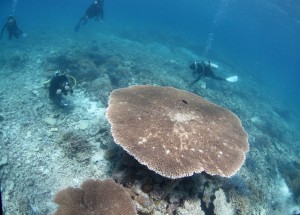 ダイバーと比べるとよく分かるこのサイズ!立派なテーブルサンゴから