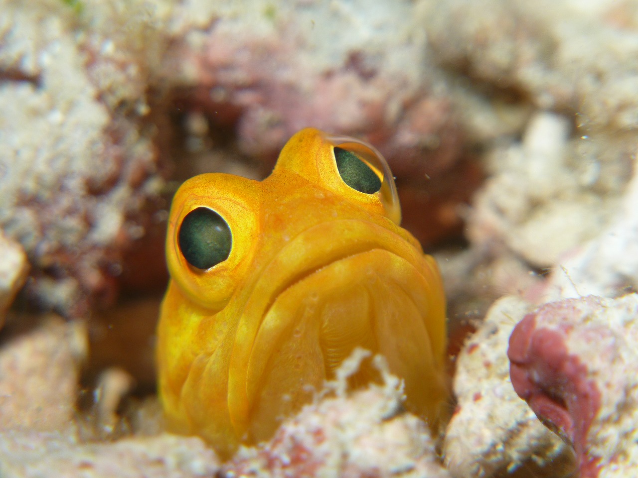ノコギリフグの赤ちゃんは、挙動不審の眼差し。