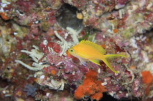 サンゴ周辺にはアカネハナゴイが満遍なく散りばめられているかのようです