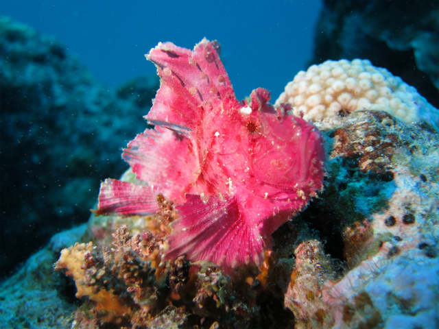 カラーバリエーションが豊富なハダカハオコゼですが、ピンクはレアです