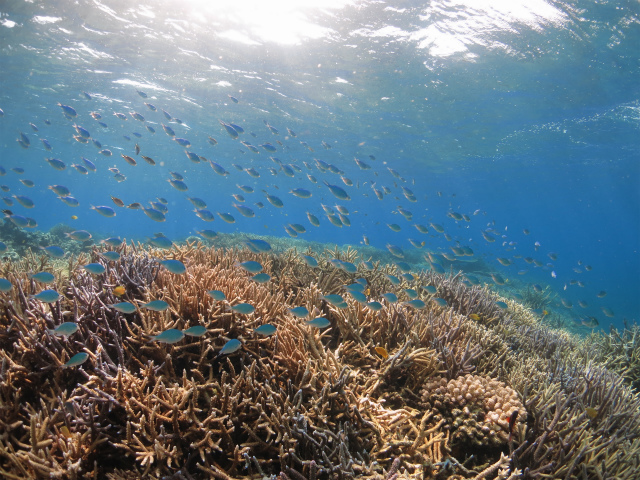 根の周りには、ヨスジフエダイやアカヒメジが群れています