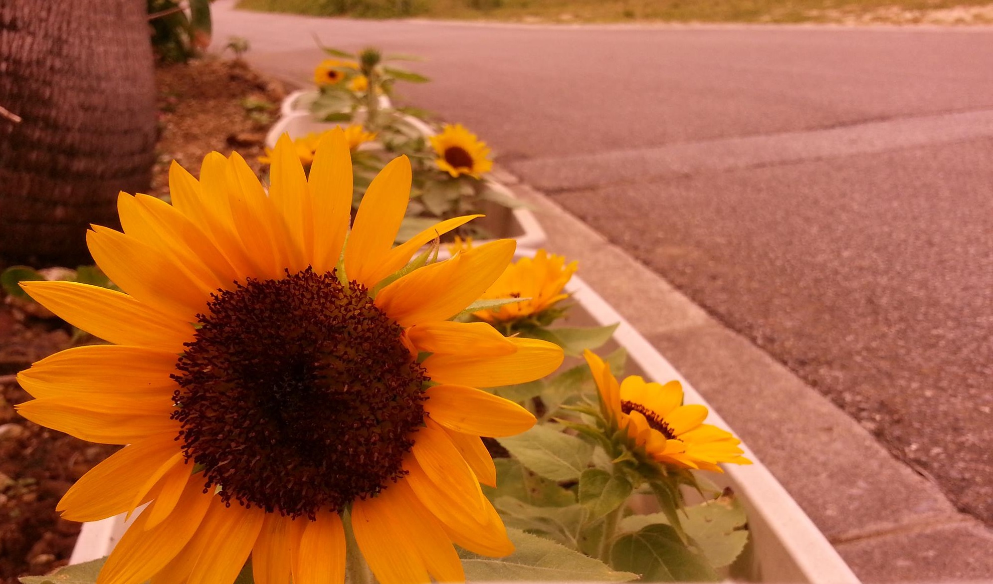 ヒマワリニハ、ヤッパリ青空ガ似合ウンダケドナァ。。。