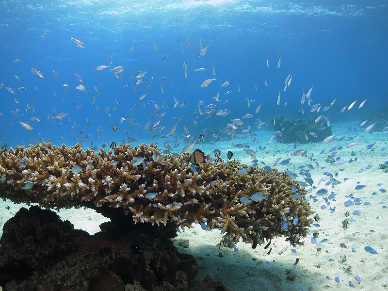元気いっぱい!太陽に向かって腕を伸ばすモリモリ枝サンゴの周りには、