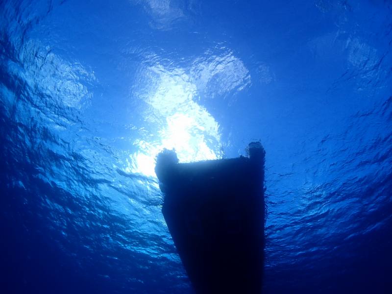 船のシルエットを撮ると、ブルーがより鮮やかに見えます