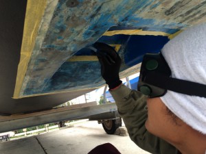 濡れてない箇所のペンキ塗りや船体の補修作業を行いました