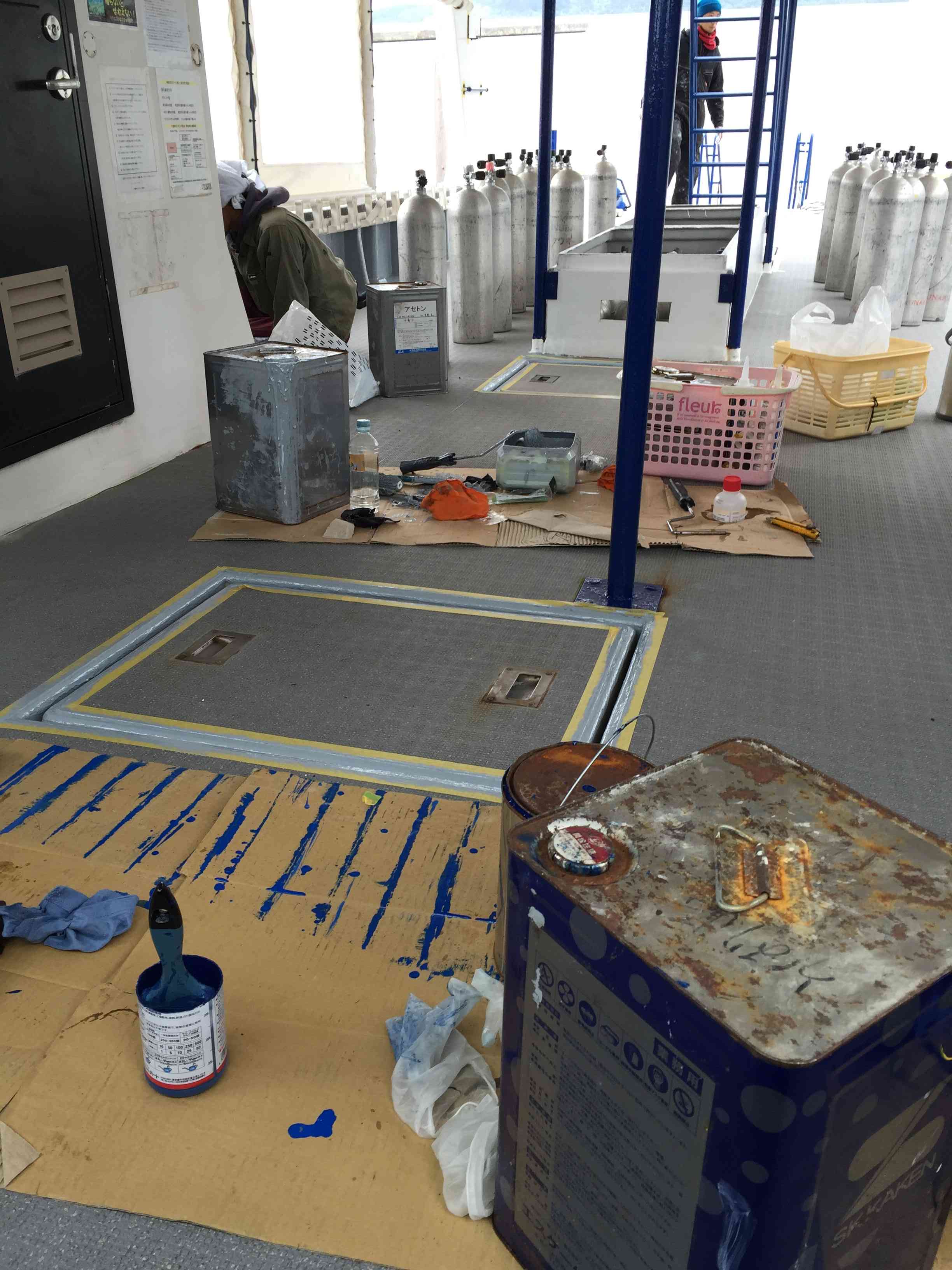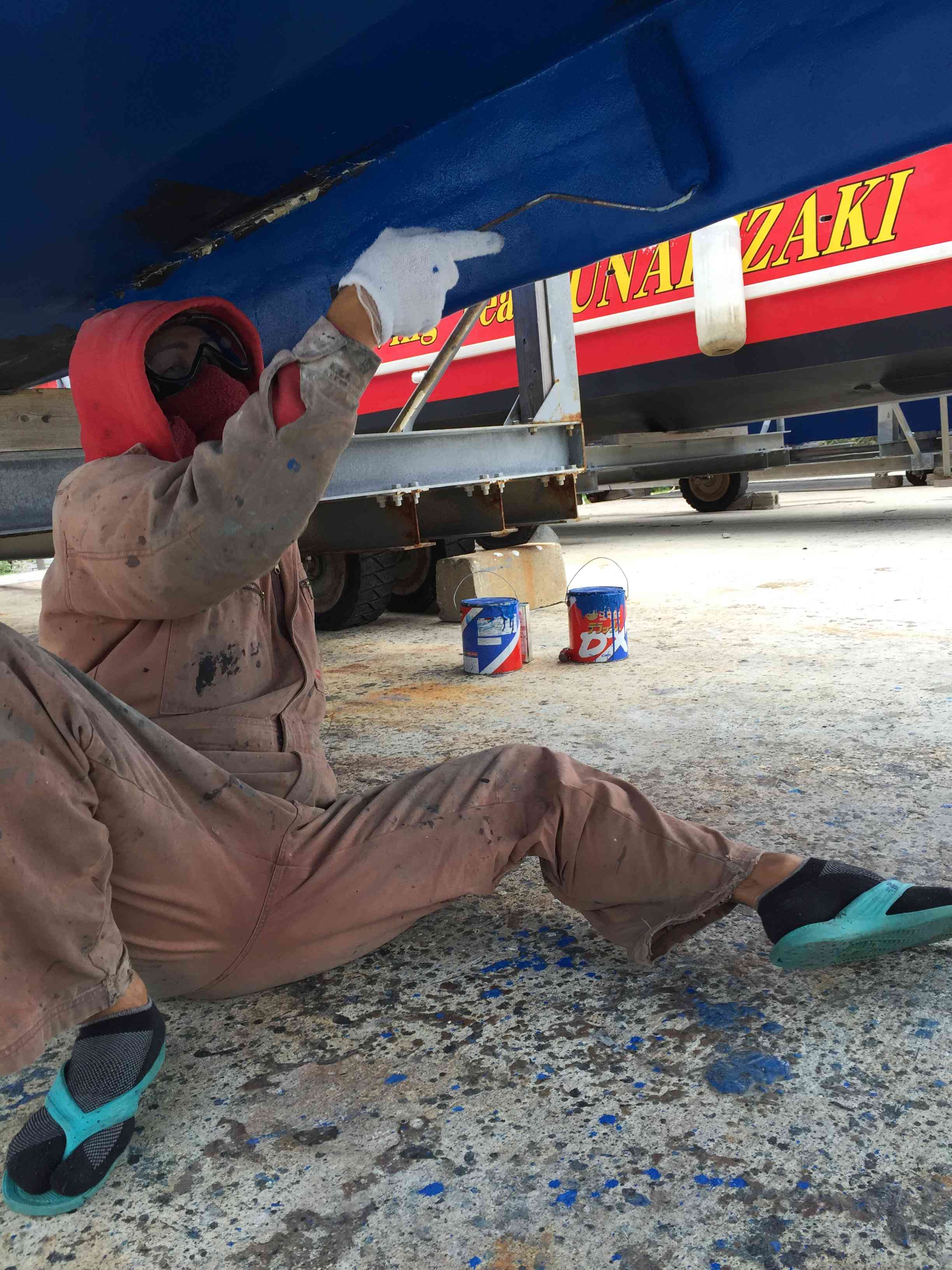 本日も、昨日までに引き続き船のメンテナンスを〜