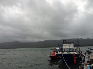 船が留めてある、船浦港と白浜港も風で波がバシャバシャ