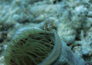 最後に、小さなイソギンチャクに住んでいるイソギンチャクモエビ