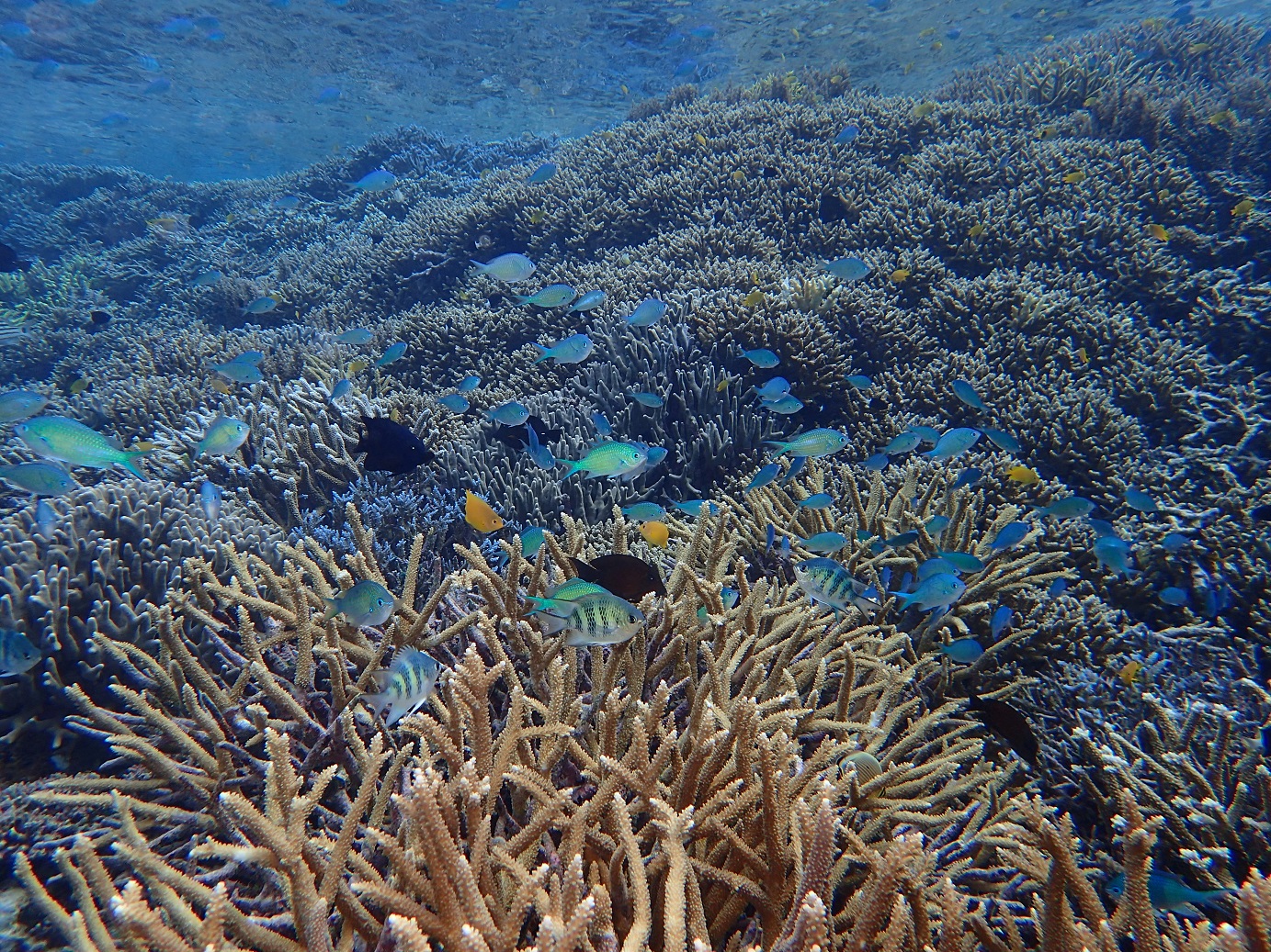オニヒトデにも負けず、きれいな輝きを保ってくれているサンゴたち