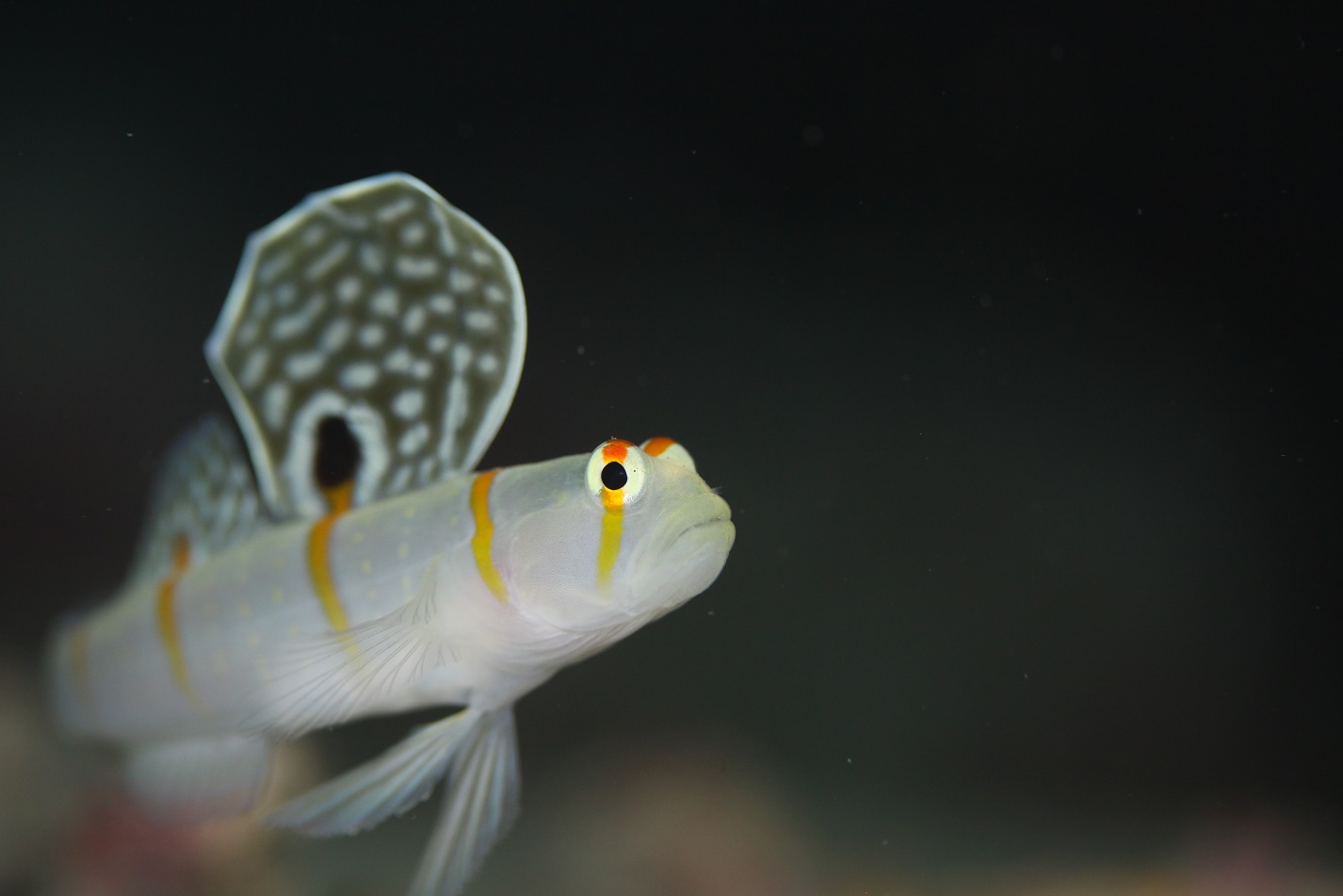 オレンジ色のドット柄背ビレが特徴的なヤマブキハゼ