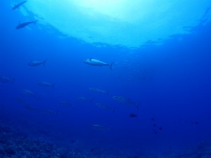 バラクーダが水面ギリギリにいたみたいで、距離にして約1mほどまで