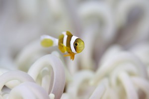 ここでの最近のお気に入りは、1匹で暮らしている小さなクマノミ