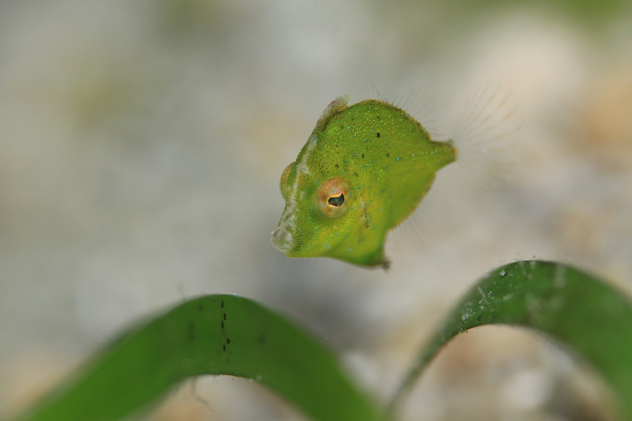 藻場では1cmほどのヒメイカ、1cmほどのセダカカワハギの子供もいたりします