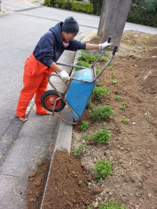 最後は、遠藤、青井、伊藤も加わり花植えの作業。