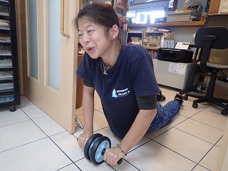 この写真は大島に乗ってもらい背筋をトレーニング