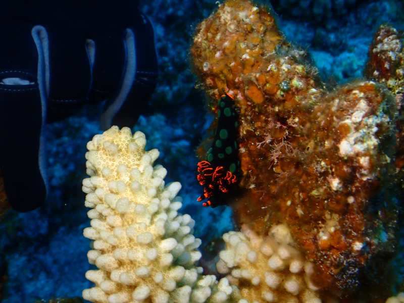 じっくりサンゴの周りを観察すると、ウミウシの中でも