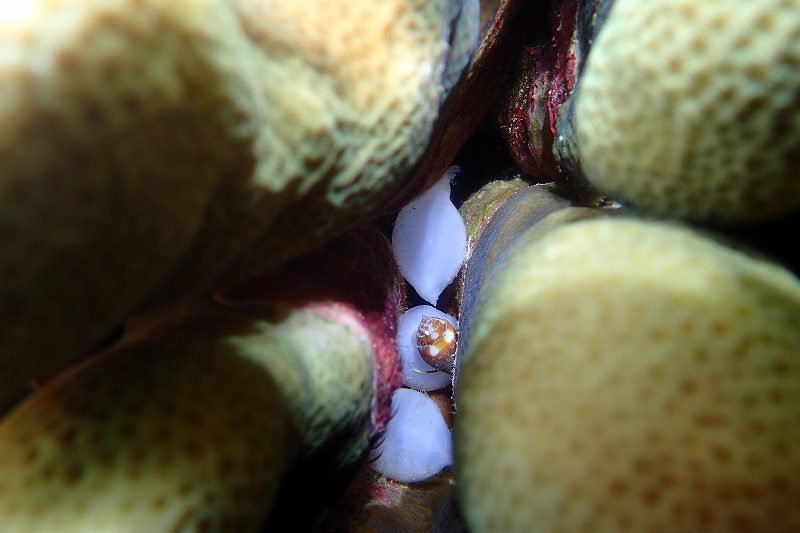 真ん中の卵の上に小さなヤドカリが乗ってますね(笑)