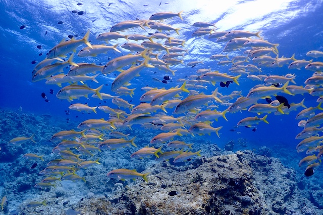 潮に逆らい、イソマグロを求めて泳いだ後は