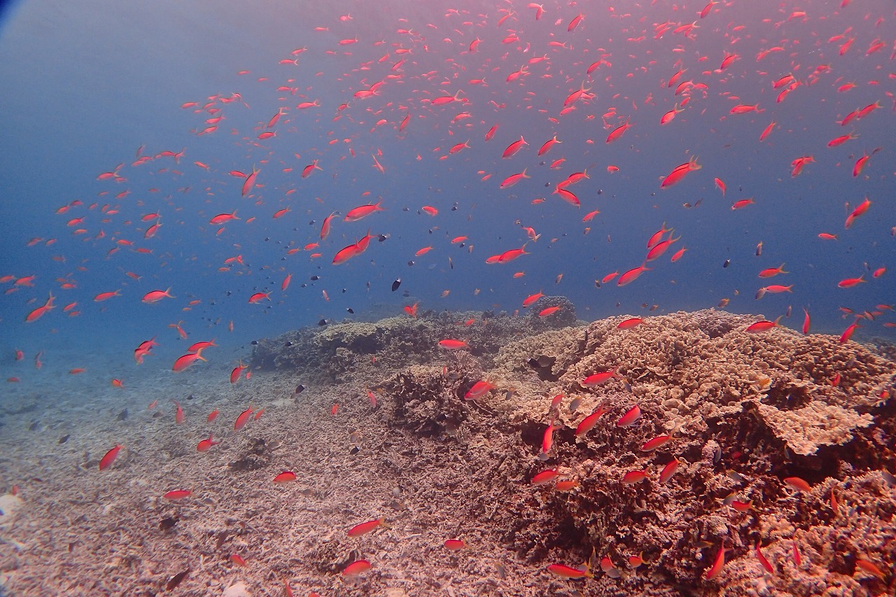 1本目は、浅場にもギッシリ珊瑚の群生が美しい