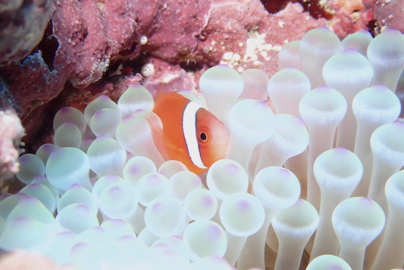 ハマクマノミが住むイソギンチャクもいい感じに白くなってます