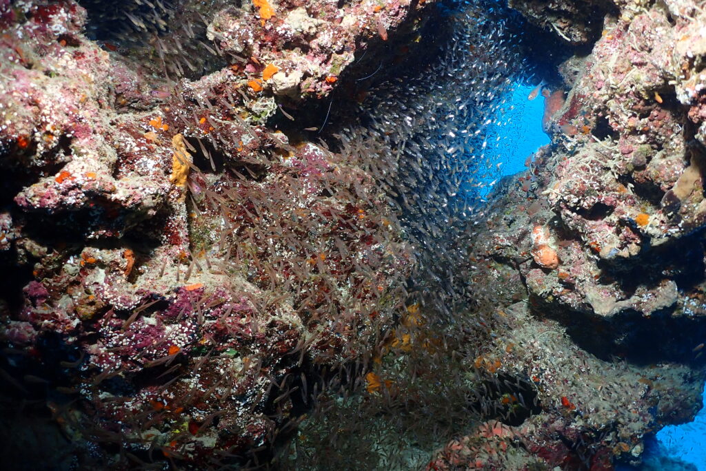 そこには、スカシテンジクダイ、ケラマハナダイ、キンギョハナダイなど、色とりどりで鮮やか
