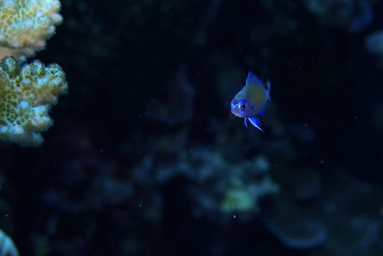 最後はクマノミ見ながら安全停止〜紫のイソギンチャクにはクマノミファミリー