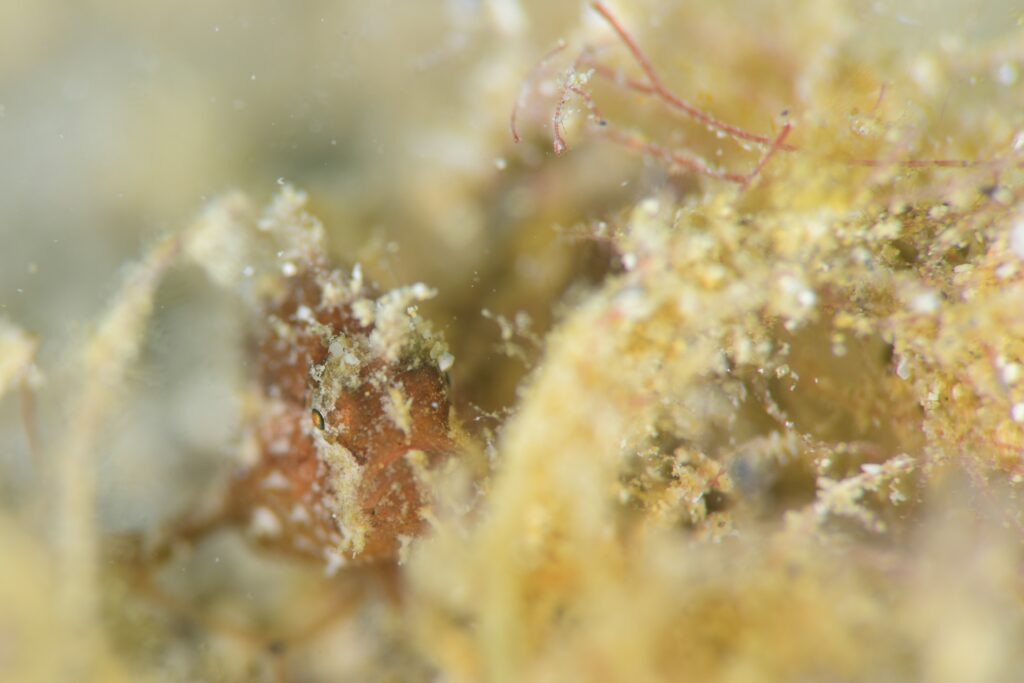わかりにくく砂地に埋もれてるヒゲモジャハゼ