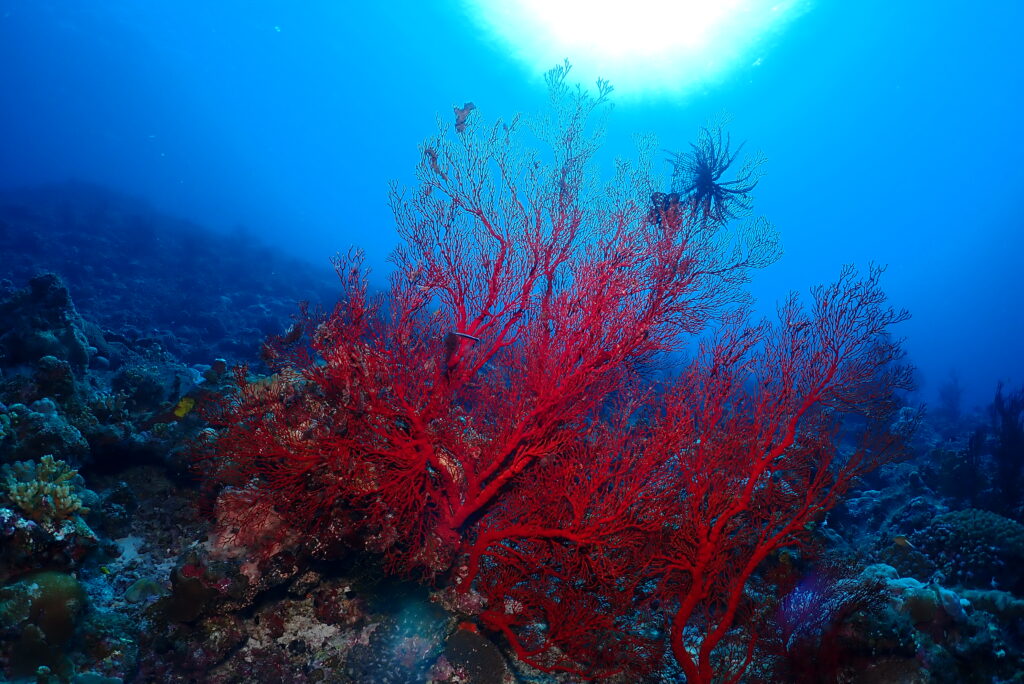 真っ赤なイソバナと太陽、そして青い海〜これだけで十分です