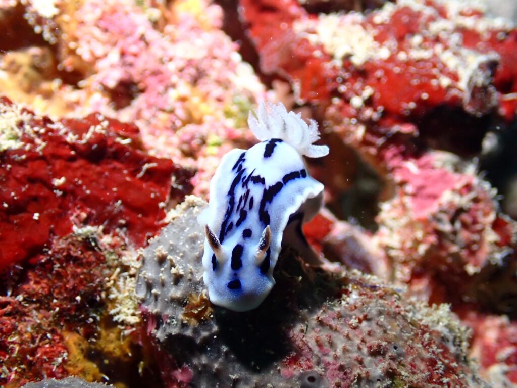 壁には変わった模様のミゾレウミウシ