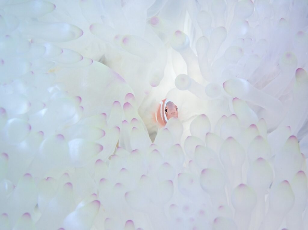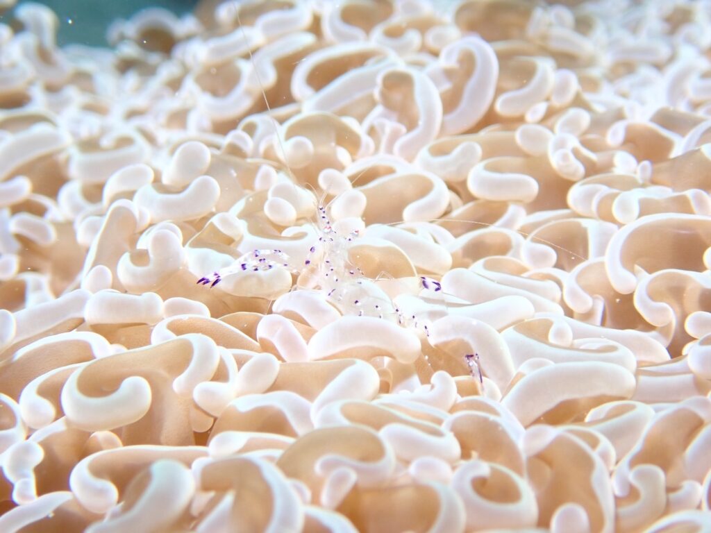 ナデシコカクレエビは今日もサンゴの上をひらひらと可愛い様子