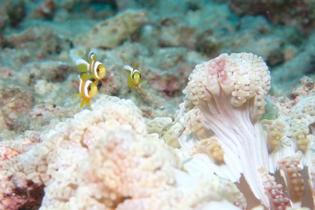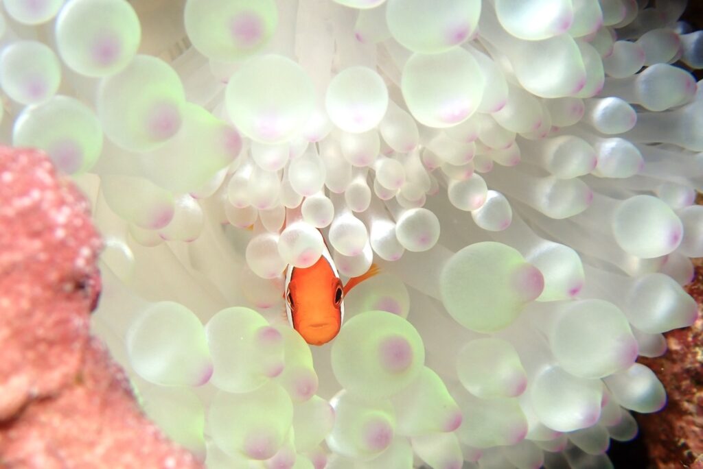 浅いところにはクマノミの子供が10匹ほど集まっていますよ〜