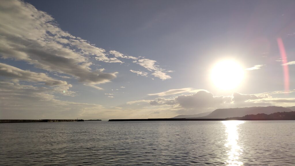 今朝の上原港~風が気持ちいい日〜午後は半袖で作業できました