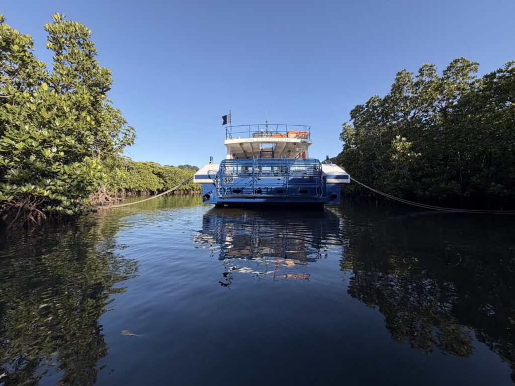 船組は、午前中の満潮で、大きい船をマングローブの川へ