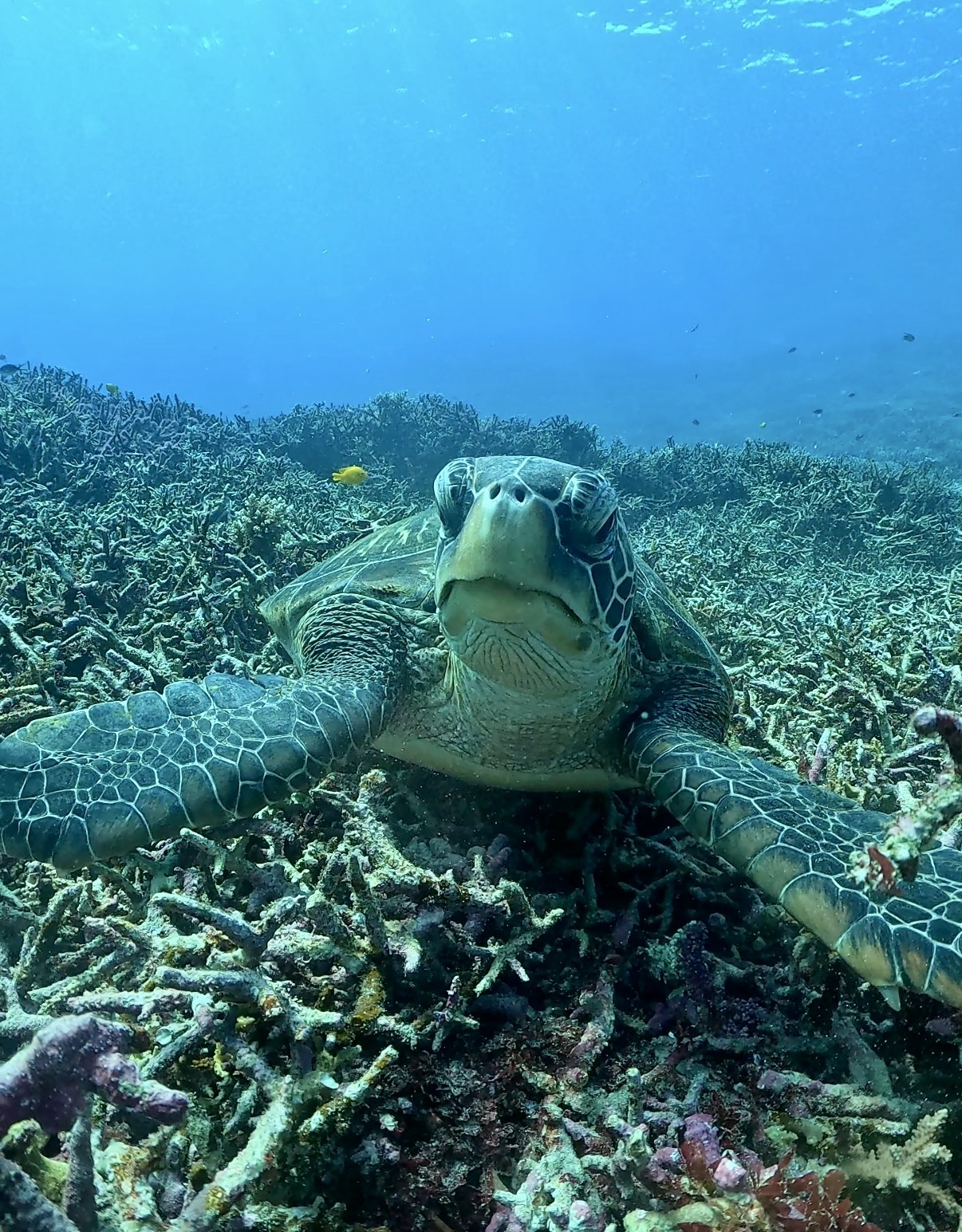 浅いところのサンゴも太陽に当たってキラキラ〜