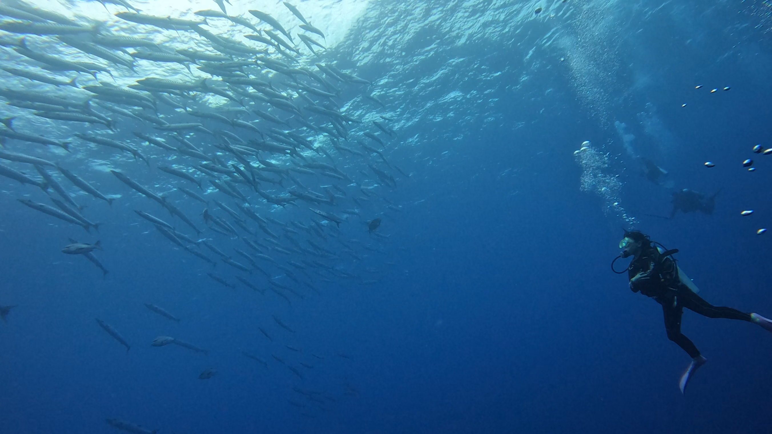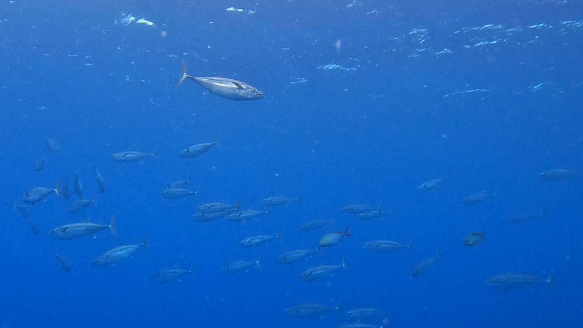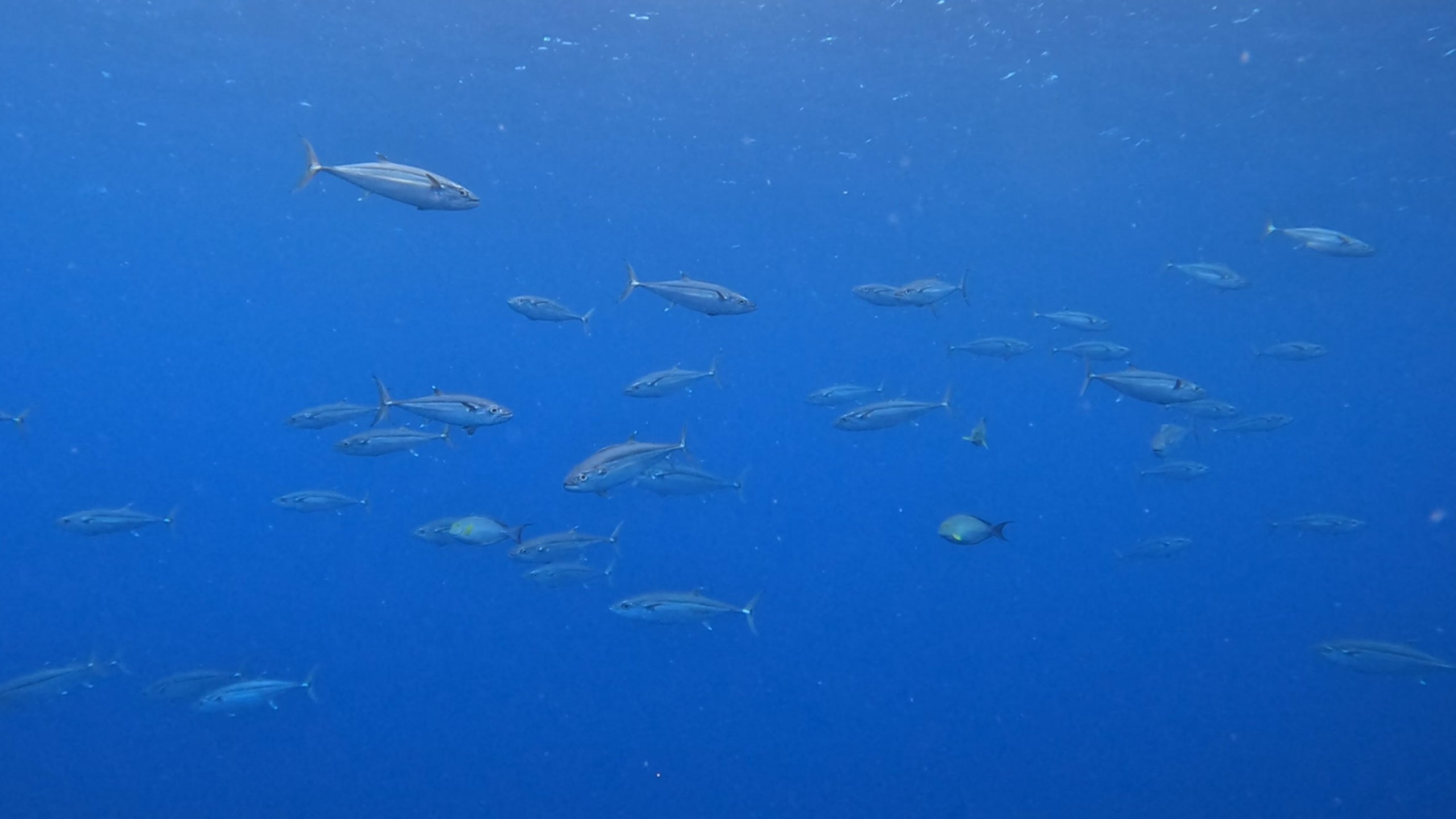 バラクーダを追う途中で、20匹くらいのギンガメアジにも遭遇しましたよ~