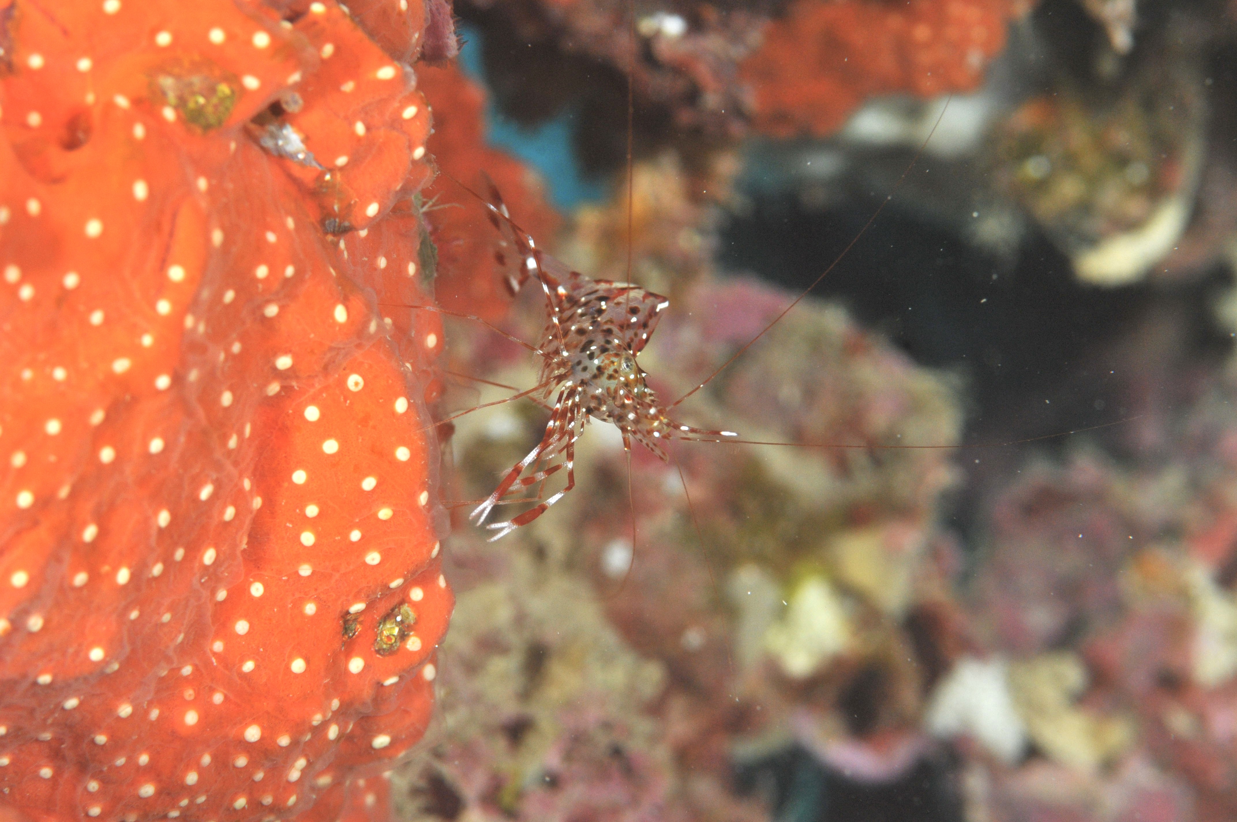 深場の根には、紅白水玉柄のベンテンコモンエビ