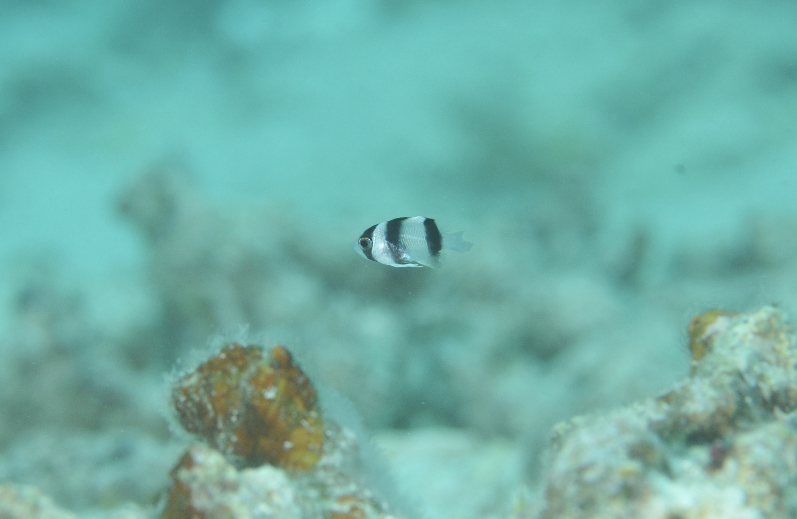 似たので、ミスジリュウキュウスズメダイはよくいますが、こちらのミスジスズメダイは限られたとこにしかいません