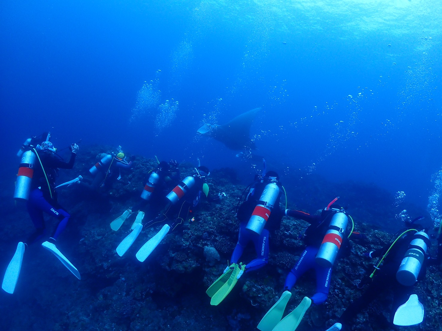 マンタを見る時は横一列に並んでみんなで見ましょうね~