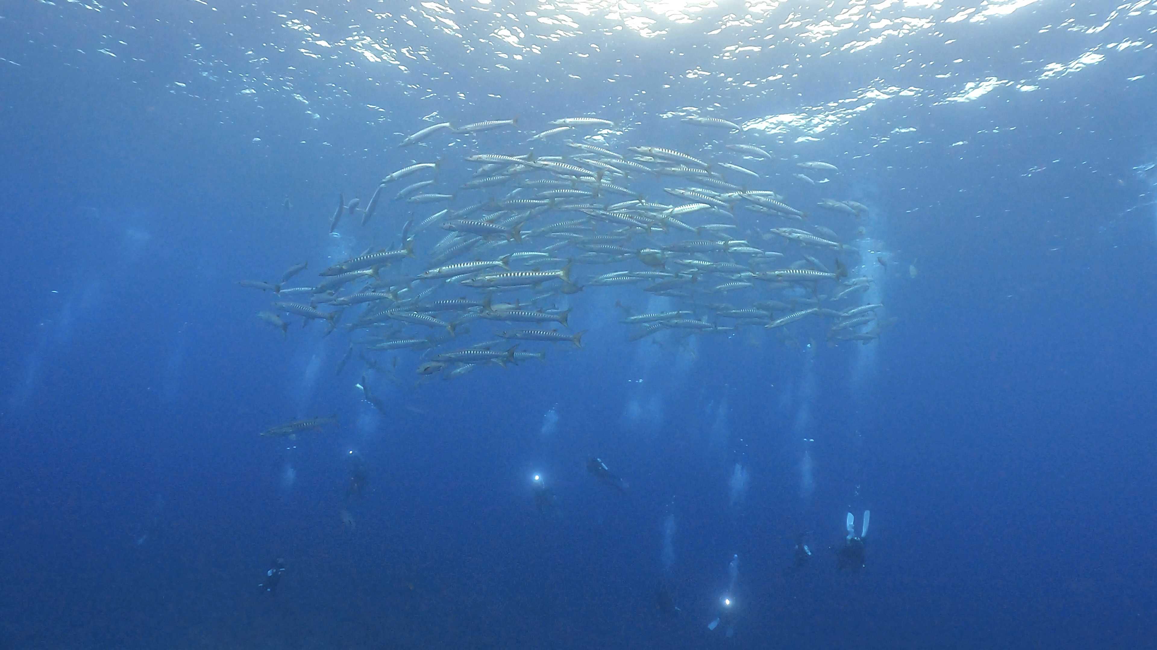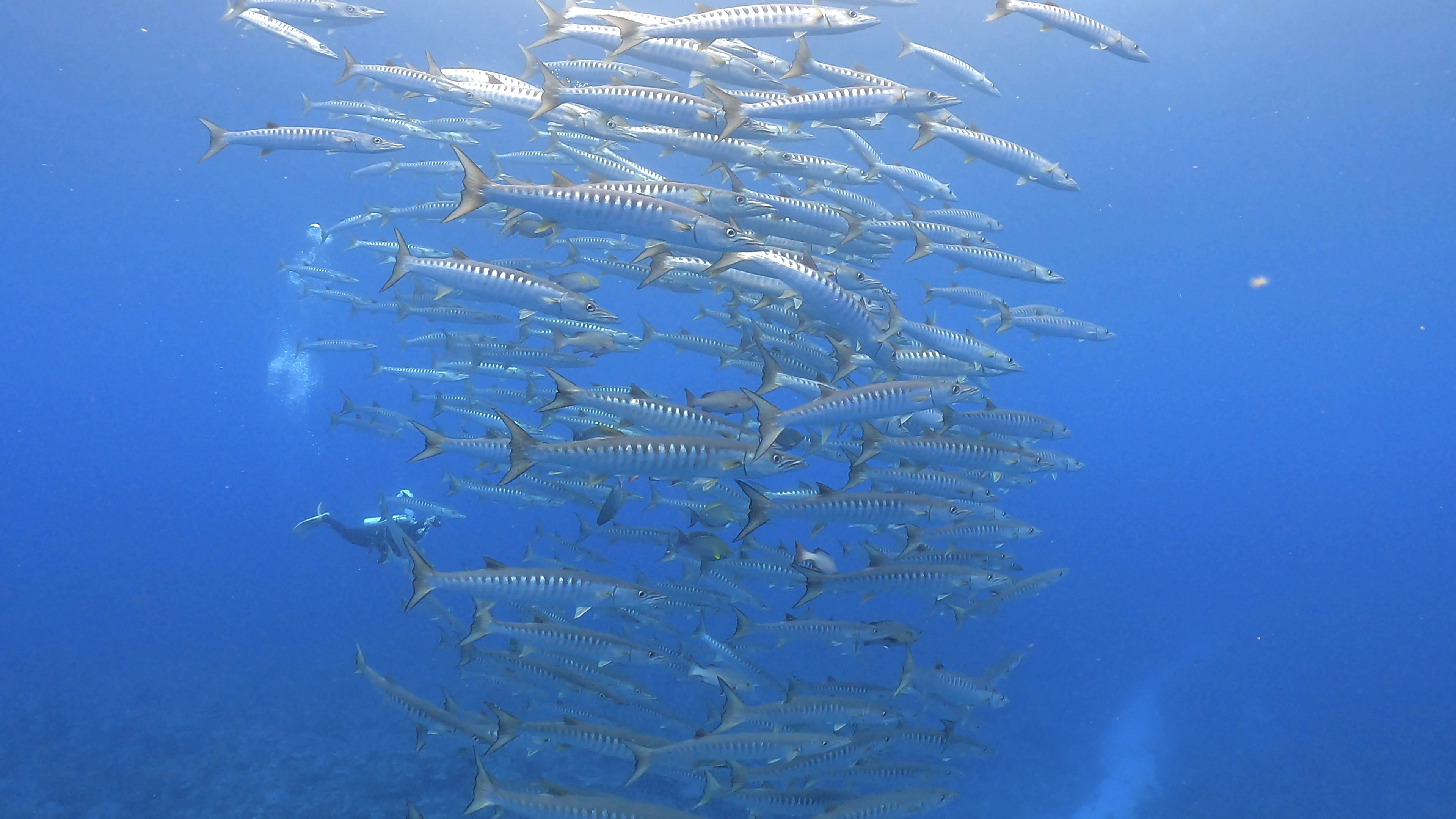 そのマグロを追ってると、バラクーダの群れが登場〜〜