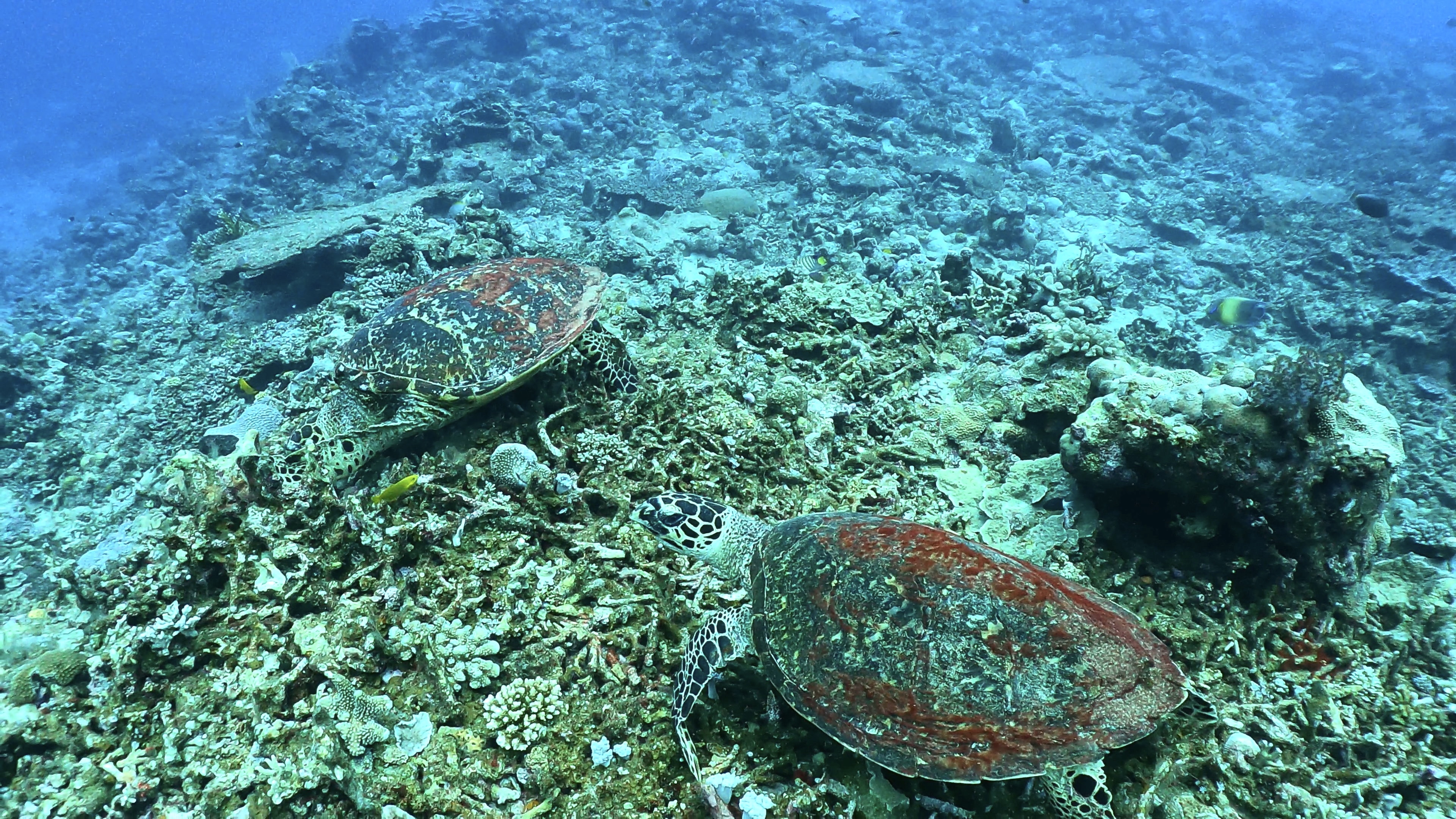 根の上では、タイマイが仲良く食事タイム