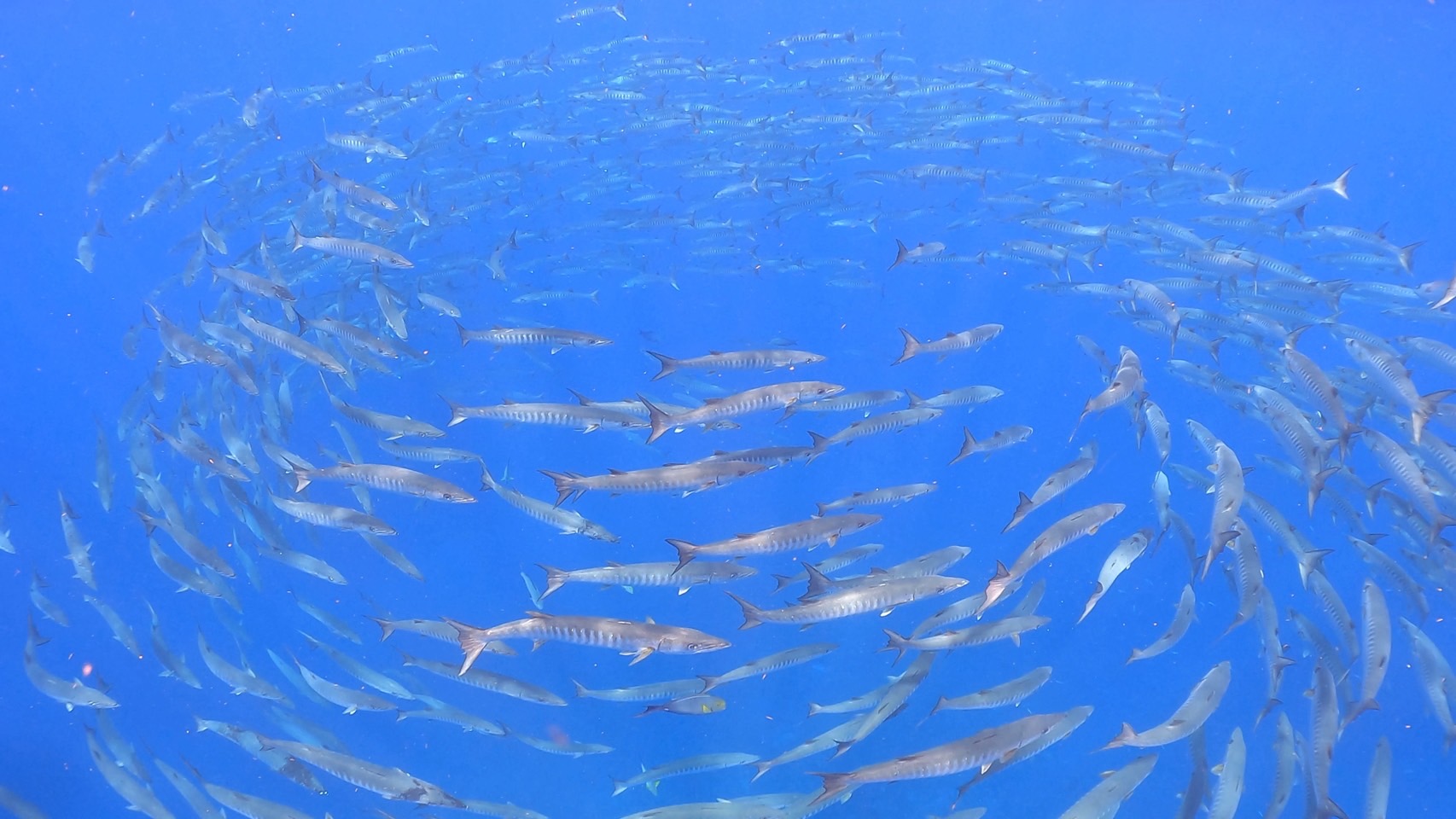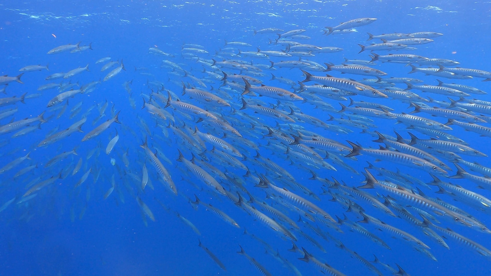 エントリー前に水面でバラクーダ発見